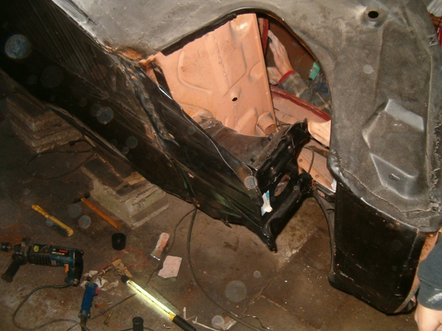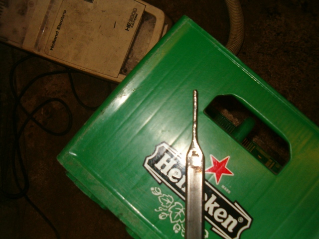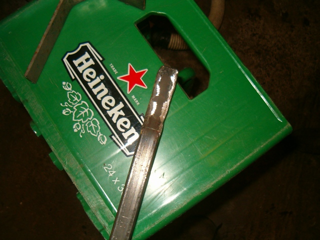 De chassiskop was eindelijk binnen, hij leek alleen niet helemaal recht te zijn, maar gelukkig viel dit mee :-) Dus daarna is pieter er meteen mee begonnen om die erin te lassen. Het was nog een heel karwei maar hij zit er nu grotendeels in!