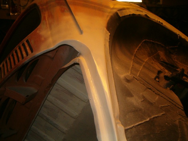 Ook nog ff een gedeelte van de achterophanging kaal gehaald en voorzien van een laagje grond verf!