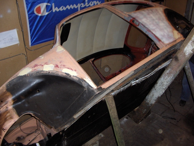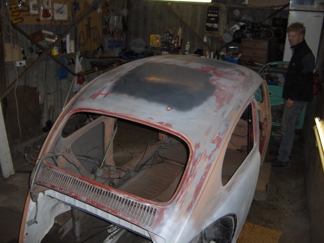 Gister weer ff druk met de kever bezig geweest!, we waren vorige weerk al even begonnen met schuren en plamuren, want er zaten op sommige plekjes nog wat Oneffenheden die we er uit hebben gehaald en weer mooi in de grondverf gezet.