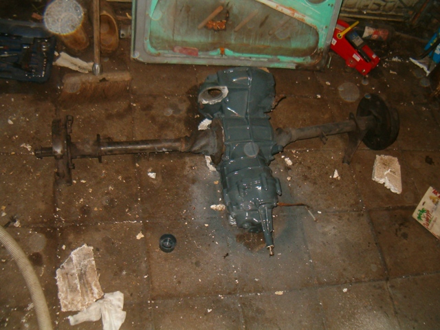 De versnellingsbak hadden we de vorige keer al in de grondverf gezet. Nu hebben we m nog even een mooi grijs kleurtje gegeven :-)