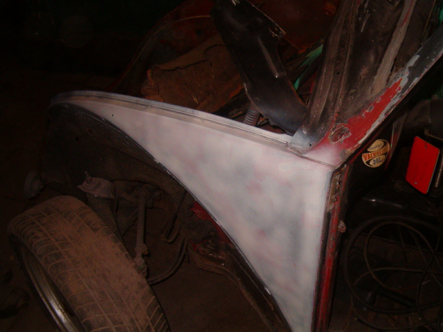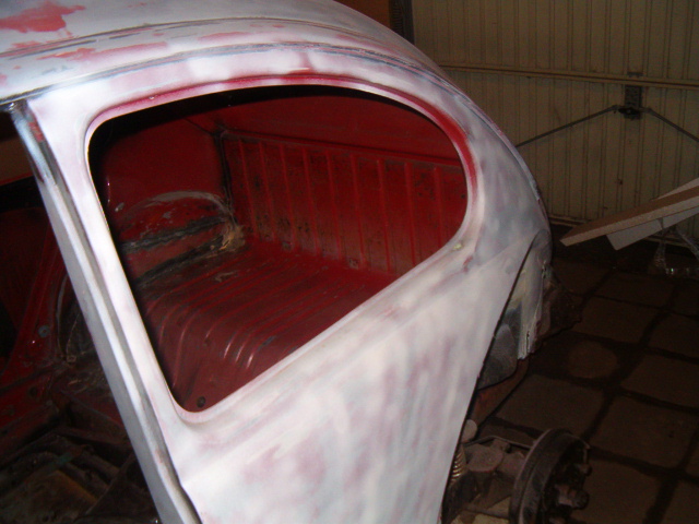 Ook de achterkant is al vast geschuurt en weer in de gronverf gezet.
