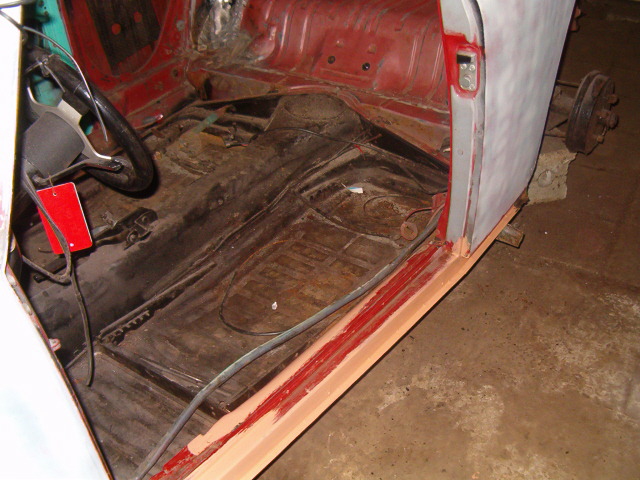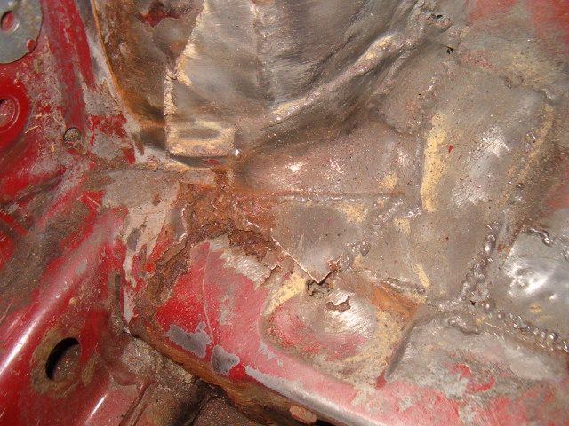 Ook hebben we aan de binnenkant van de kever, bij de spartborden, een laag bitumen achtig spul verwijderd. Hierbij kwamen we aan de linkerkant nog een stukje tegen dat ook verrot was.