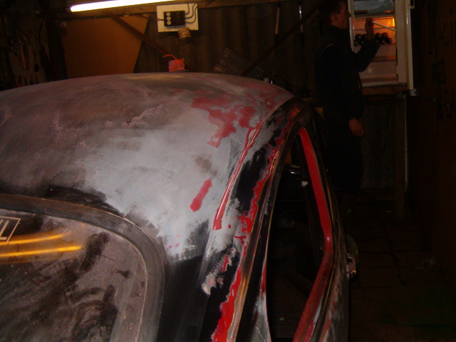 Omdat we de aangebrachte grondverf toch niet helemaal vertrouwden, hebben we deze ermaar weer afgehaald, en een andere grondverf aangebracht, die roestwerend is.