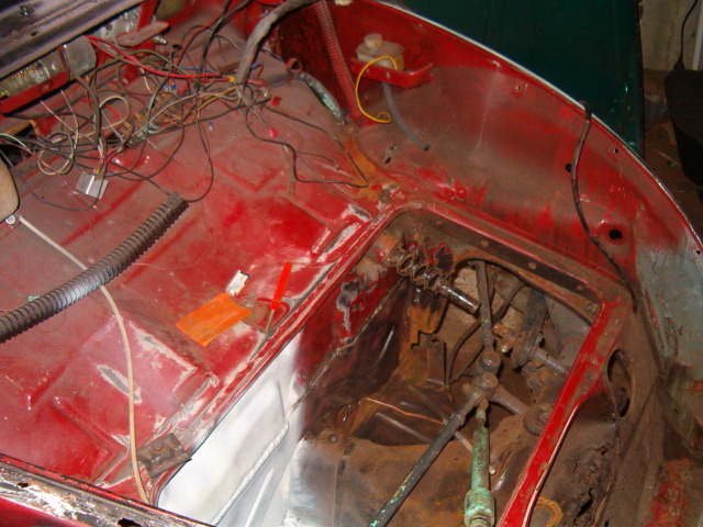 Ook bij de voorkant zijn we begonnen met kaalhalen van het staal. Gelukkig zag dit er op een stukje na, verder allemaal goed uit.De linker kant is al helemaal kaal gehaald en opnieuw weer in de grondverf gezet. Met de rechter kant zijn we nog druk bezig om deze helemaal roestvrij te krijgen. Maar gelukkig is dat allemaal oppervlakkige roest, en het is verder niet door gerot.