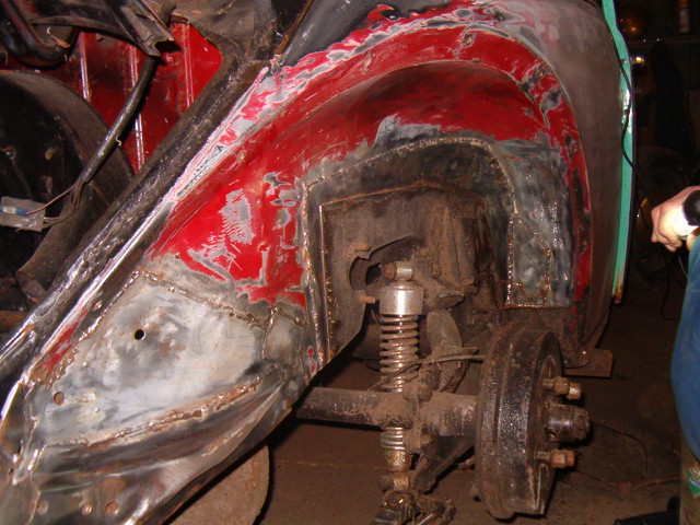 Nu konden we beginnen met het las en flex werk. We hadden verder nog niet een lasapparaat om het fijne plaatwerk te kunnen lassen. Eerst een 230 mig/mag lasapparaat geleend van mijn hele lieve broertje :-P Dit laste opzich wel mooi, alleen op dit lassapparaat konden alleen kleine gasflesjes aangesloten worden. Dit heeft als nadeel dat de kleine flesjes vrij snel leeg zijn :-( en ze vrij duur zijn, voor de kleine hoeveelheid die je krijgt. Dus we zijn op het moment nog druk op zoek naar een geschikt lasapparaat.