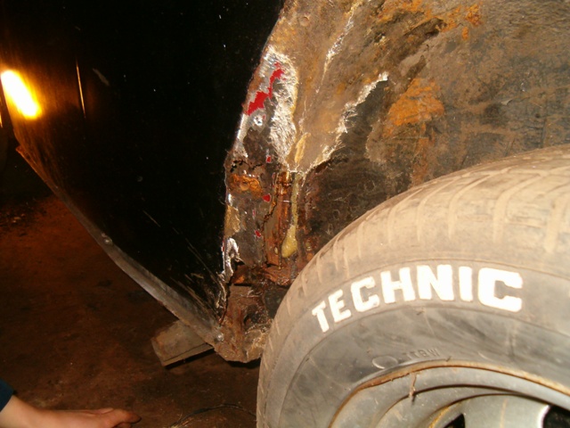 Toen we de tectiel linksvoor eraf haalden kwamen we erachter dat het daar ook wat weg gerrot was.