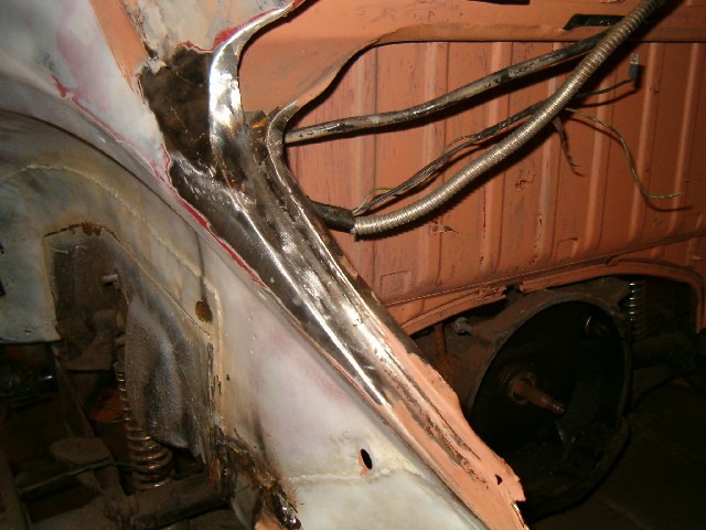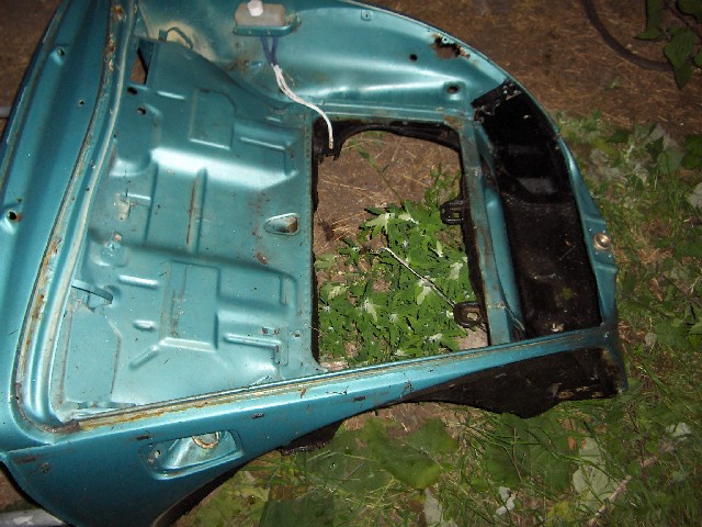 Ook de randen voor zagen er hier nog wel netjes uit, hier was het bij ons nog al aardig verrot!Ook de bandenbak zag er hier nog wel netjes uit, wel een paar verotte stukjes, maar niet zo erg als bij ons.