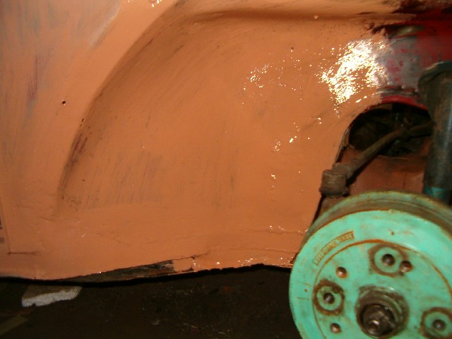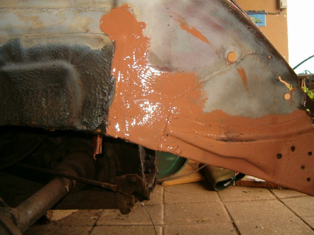 Ook de linkerachterkant is verder afgelast en alweer gedeeltelijk in de verf gezet!