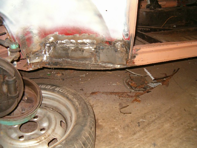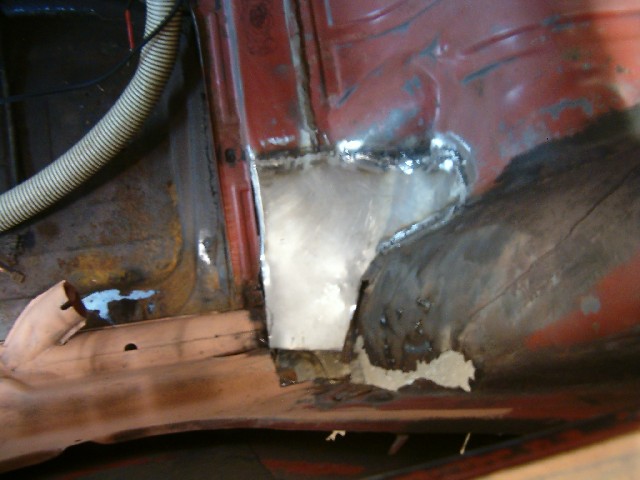 Bij de rechtervoorkant zijn we ook alvast begonnen, bij het deurportier was het hier een beetje weggerot. Hier hebben we weer wat nieuwe stukjes in gelast en ziet er zo weer netjes uit!