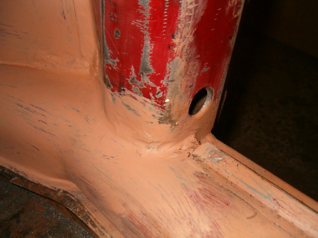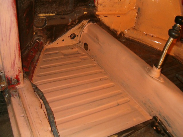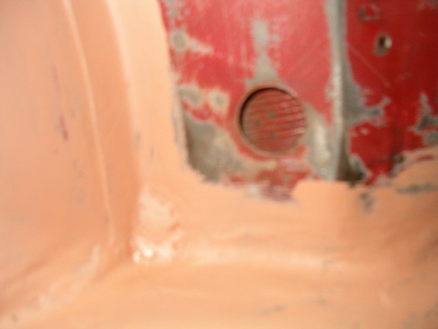 Bij de linkervoorkant hebben we ook meteen de bodem in de verf gezet, de bodem zag er verder nog helemaal goed uit en had verder helemaal geen roest!