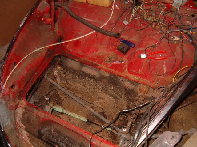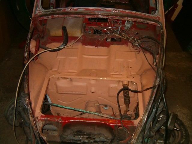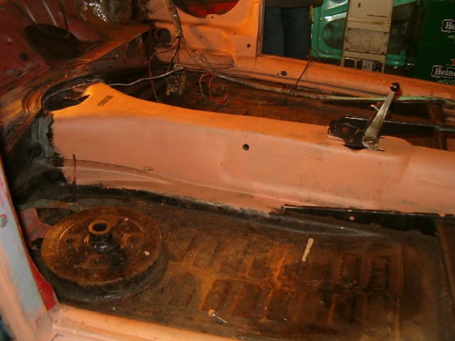 Verder hebben we de kofferbak ontdaan van de roest. Hier zat opzich niet zo heel erg veel roest, maar je kon wel zien, dat er wel eens wat remvloeistof was geknoeit, op sommige plekken was dit aardig in het metaal getrokken :-( maar gelukkig hebben we het weer helemaal netjes gekregen!
