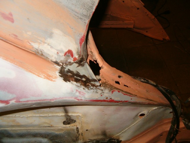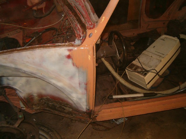De linkervoorkant (bij de deur) hebben we ook helemaal kaal gehad. Gelukkig viel het hier mee met de roest! Er waren maar een paar kleine stukjes, maar die hebben we verwijderd.