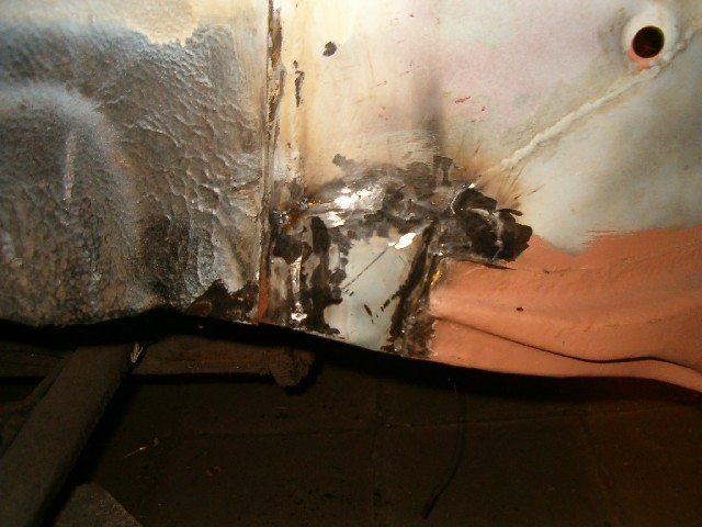 Ook pieter is weer druk bezig geweest, hij is weer verdergegaan met de linkerachterhoek. De vorige keer had hij daar al een paar stukjes in gezet en daar is hij nu weer mee verder gegaan. Eerst moest er een heel stuk uit worden geflext, omdat dit helemaal verrot was, en meerdere lagen over elkaar heen waren gelast. Het begin is ervan gemaakt, maar in dit stuk zit nog wel genoeg las en slijpwerk.