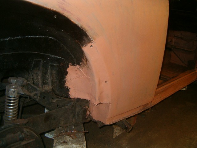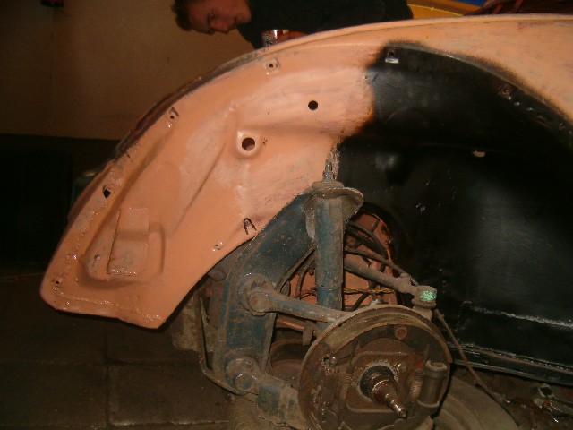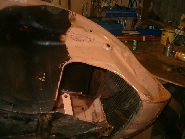 Ook zijn we met de rechtervoorkant bezig geweest, deze kofferklep rand was helemaal verrot, was zo goed als niets meer van over, deze hebben we er helemaal uitgehaald en een nieuwe er weer in gezet, en is best wel netjes geworden vonden wij zelf :-)