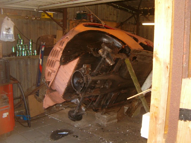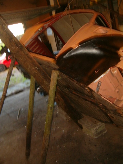 Zo het weekend weer even druk bezig geweest! Omdat het laswerk zo goed als klaar was hebben we de kever nu op zijn zijkant neergezet, het was even wat werk, maar het is gelukt!