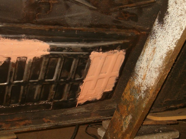 vanaf de bovenkant hadden we wat stukken in de bodem gelast, die hebben we vanaf de onderkant ook even bijgewerkt en weer in de verf gezet!