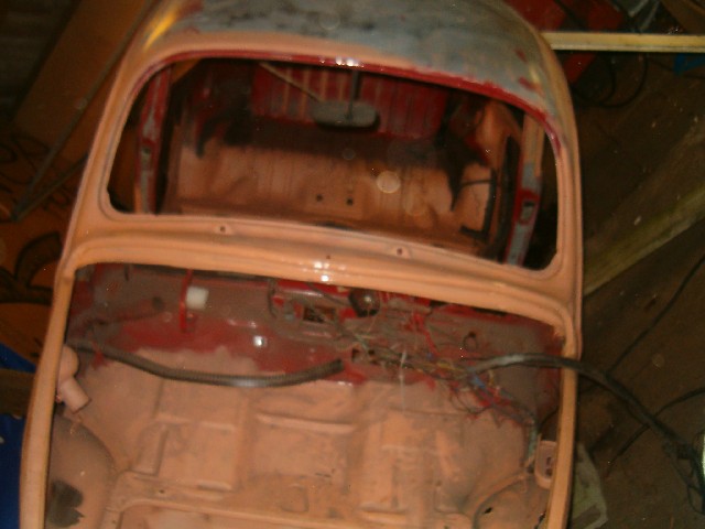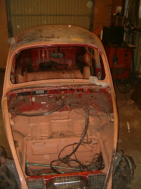 Zo weer even met de kever bezig geweest, weer even een gedeelde vrijgemaakt van tectiel, En nog eern paar kleine plekjes ontdaan van roest.Gelukkig valt het over het algemeen (op de chassiskop na) erg mee met de roest! Ook nog een een stukje bij geflext wawar we wat ingelast hadden vanaf de bovenkant