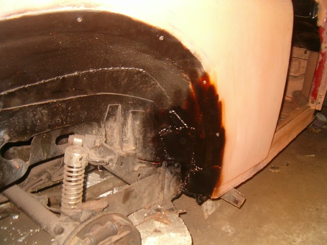 En vanaf wat dichterbij, omdat de nieuwe bandenbak er nu ook in zit konden we nu de zijkanten ook afmaken. Ook hebben we een paar roestplekjes van de bandenbak even bijgewerkt!