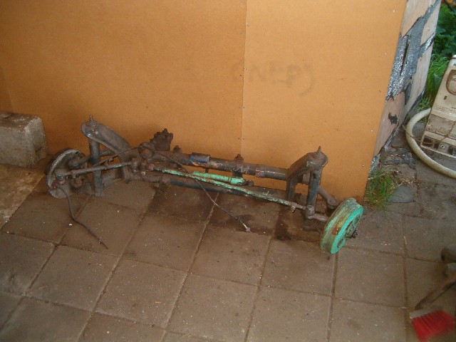 De vooras hebben we er ook meteen maar even vanaf gehaald, deze zag er op een paar plekjes na wel netjes uit. Alleen bij de bevestiging van de vooras op het frame was wel een stuk weg gerot, en moet dus nog vervangen worden :-(